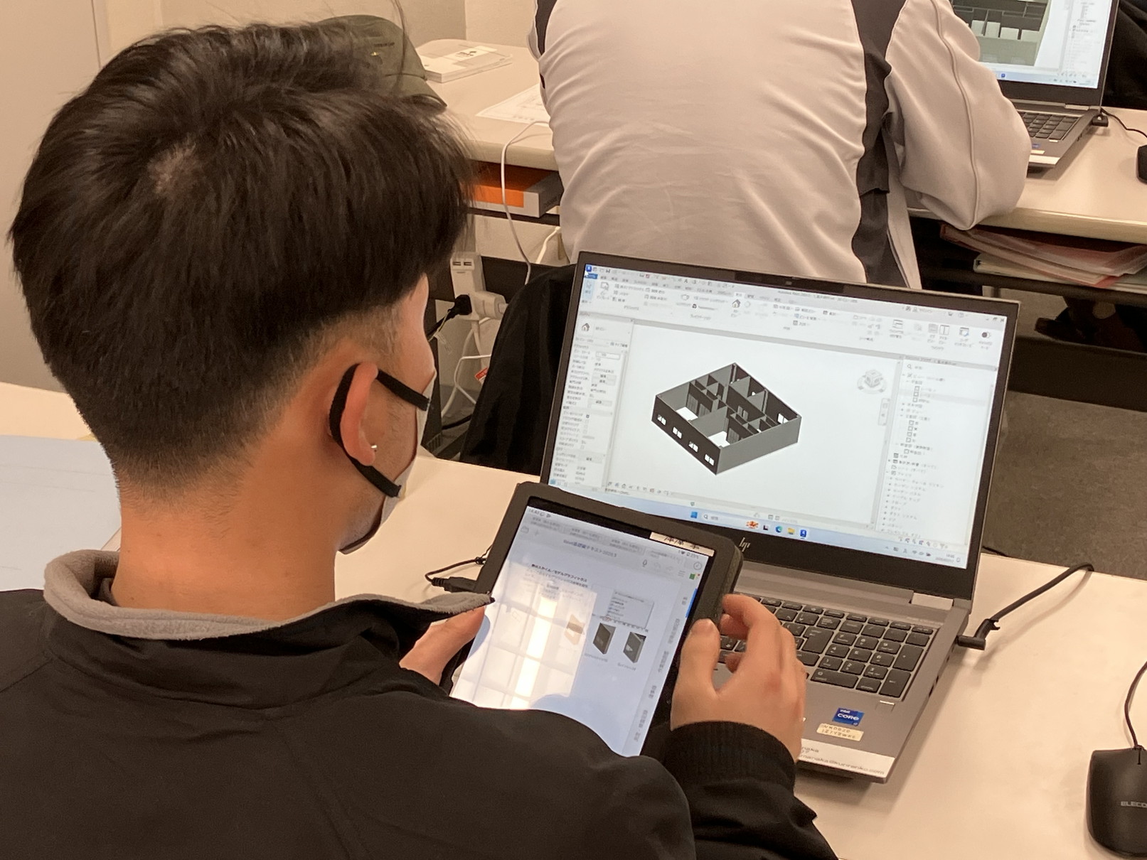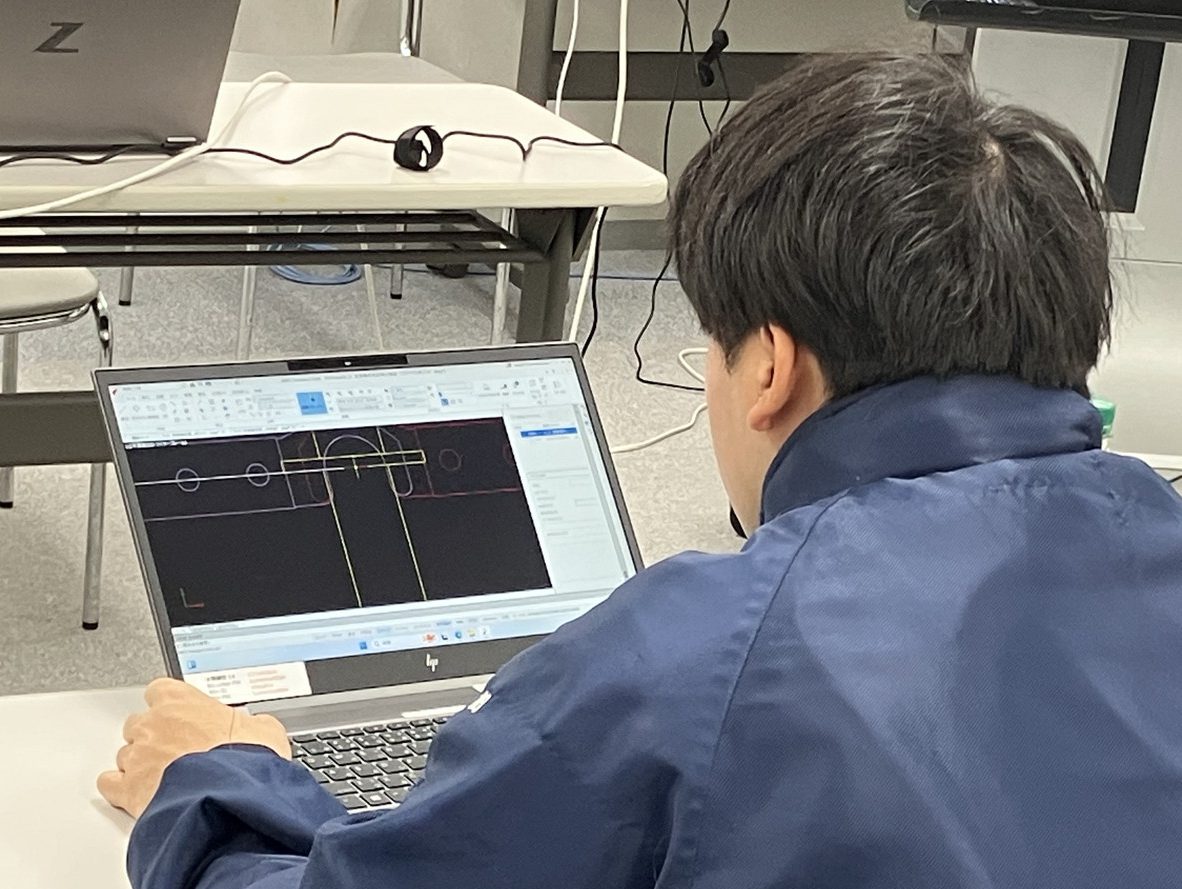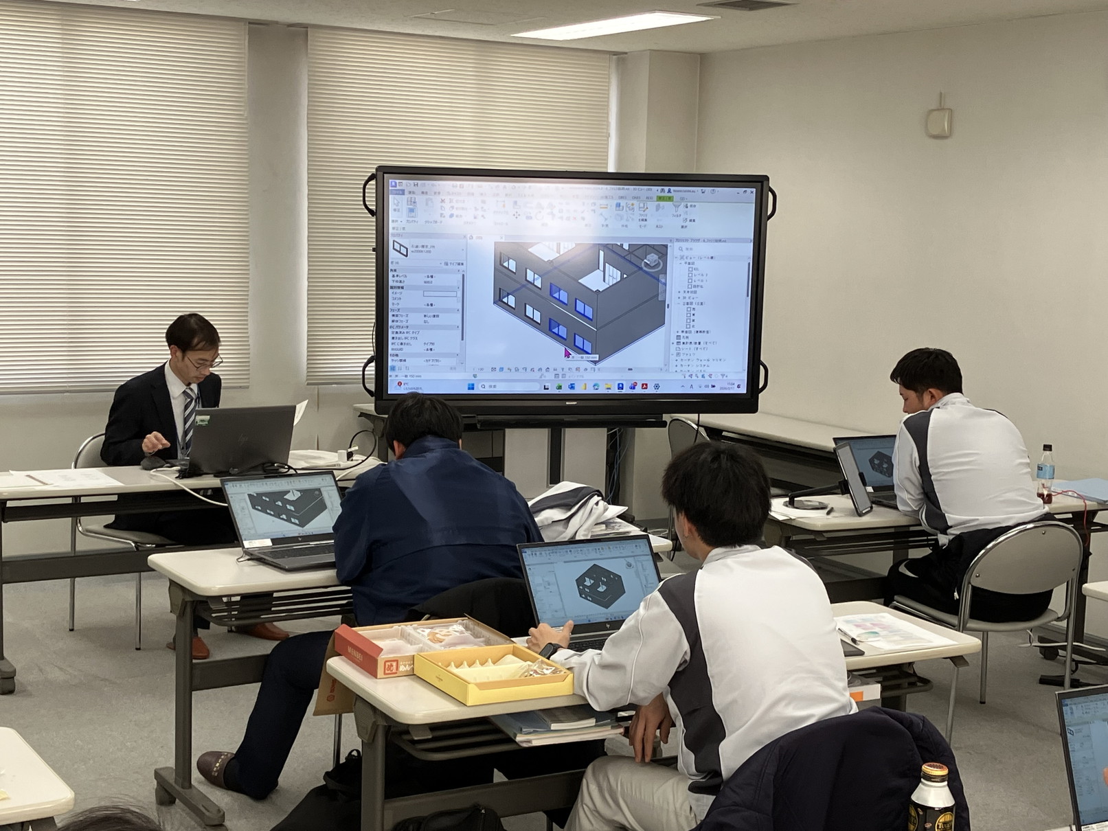 ↓午前・仮設計画演習2 CAD利用の講義状況
