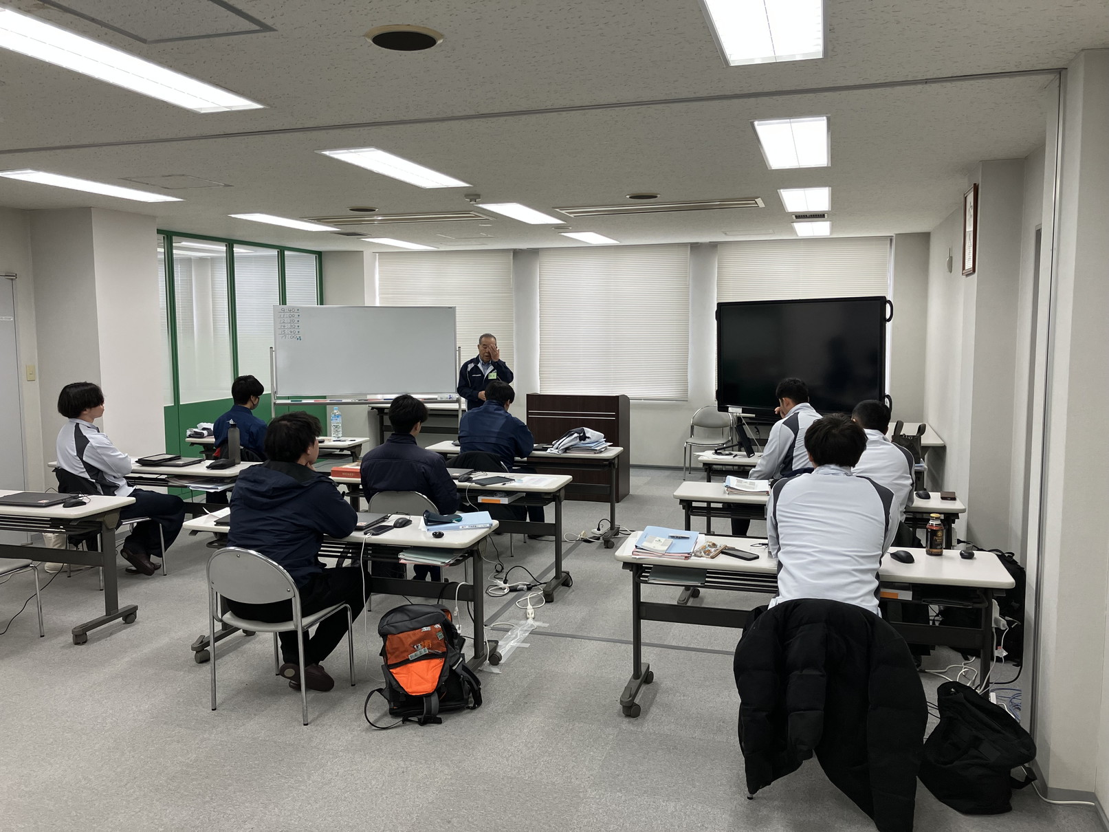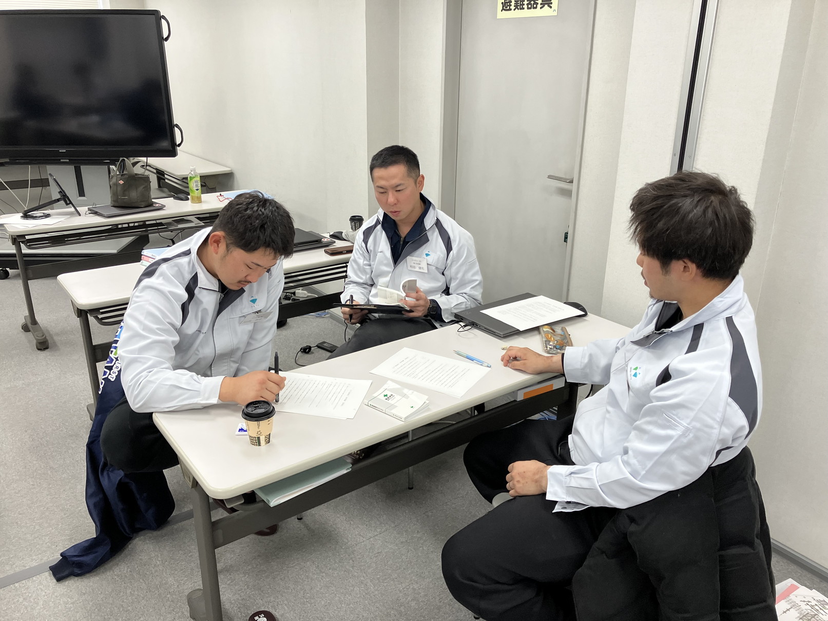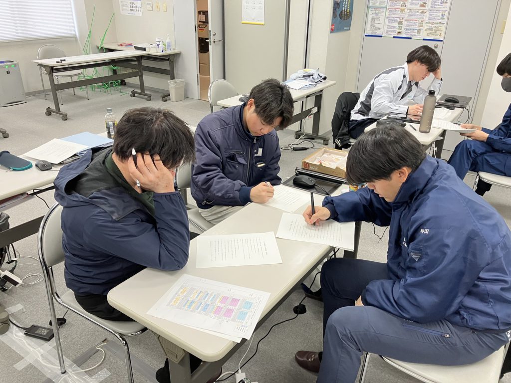 ↓午前・技能士対策講座(学科)の講義状況(グループワークで試験問題を解きます。)